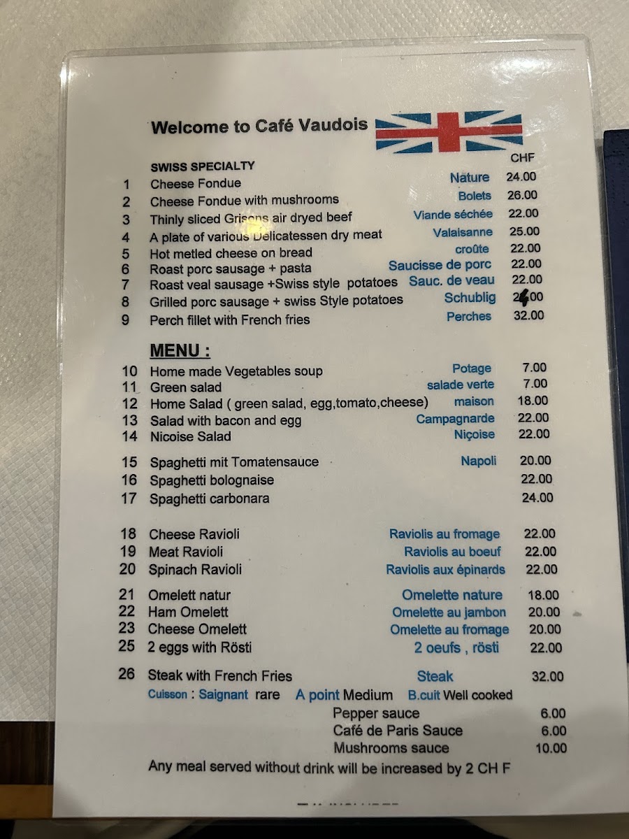 Café Vaudois Menu